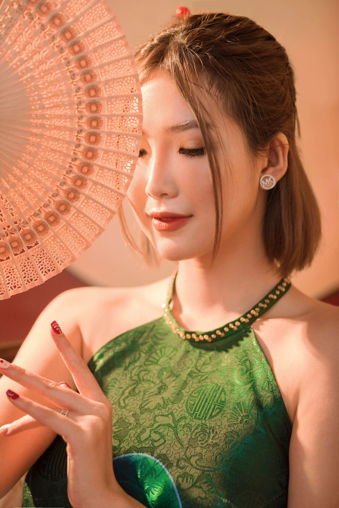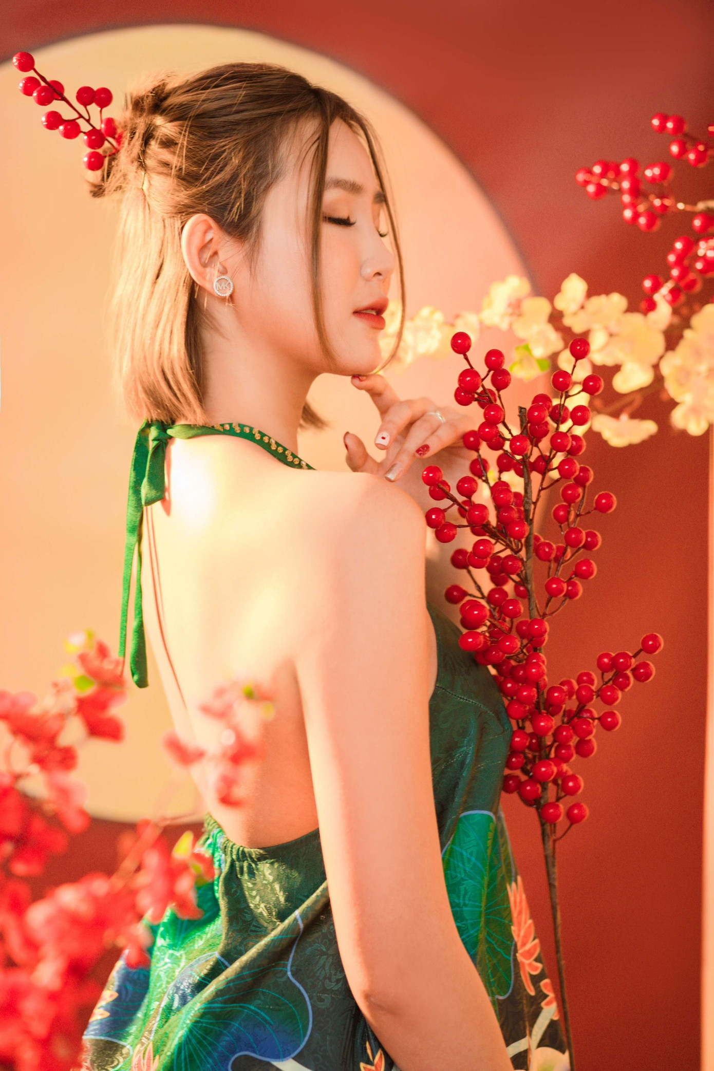 Trong dịp Tết cổ truyền Việt Nam, lấy cảm hứng từ áo yếm Việt Nam, Táo Nhung đã thực hiện một bộ ảnh tết đầy màu sắc với một tông nền đỏ kết hợp với áo yếm màu xanh với những họa tiết in chìm cùng cánh sen, tạo sự nổi bật về trang phục lẫn thần thái và nhan sắc xinh đẹp của Táo Nhung.