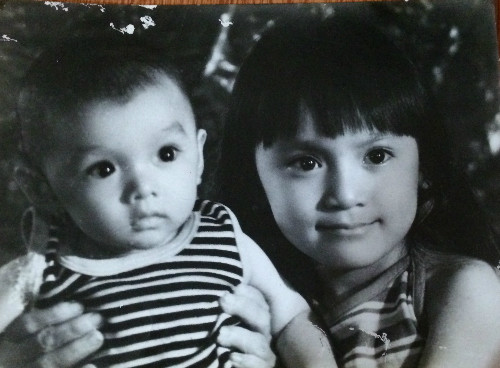 Y Phụng năm 6 tuổi khi chụp hình cùng em trai. Lúc này cô đã theo cha mẹ lên sân khấu cải lương đóng vai quần chúng.