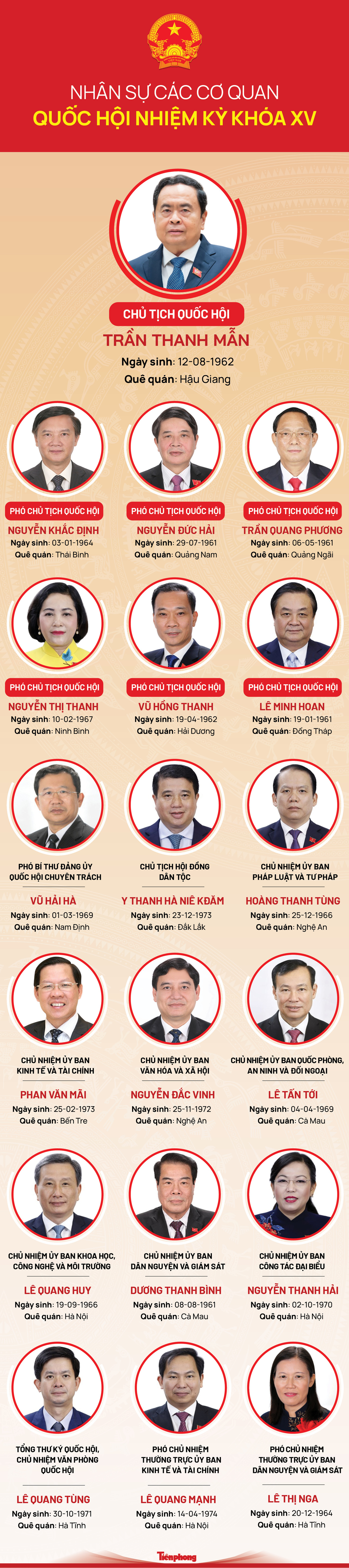 Nhân sự các cơ quan Quốc hội khóa XV sau khi kiện toàn
