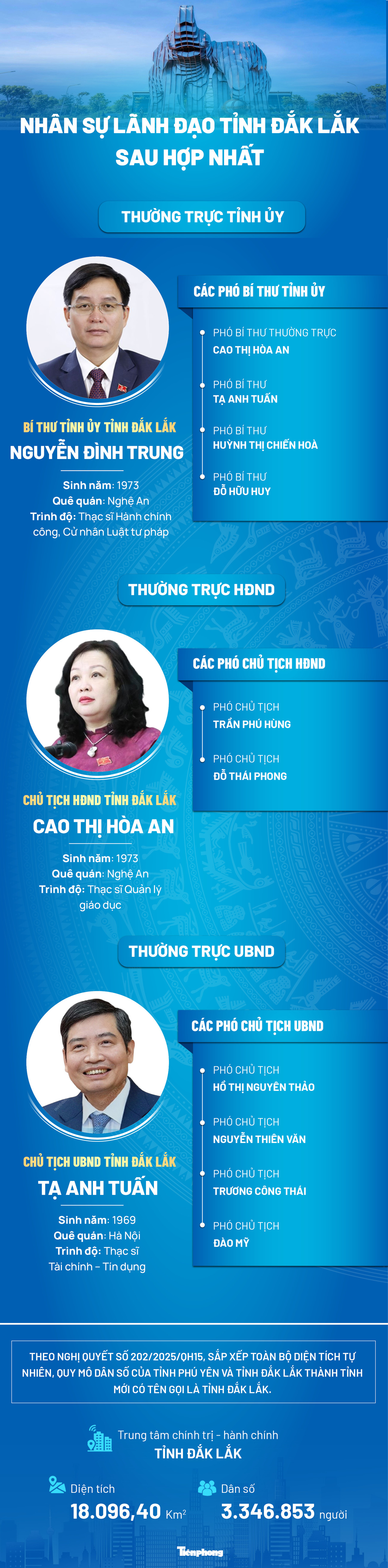 Nhân sự lãnh đạo tỉnh Đắk Lắk sau hợp nhất