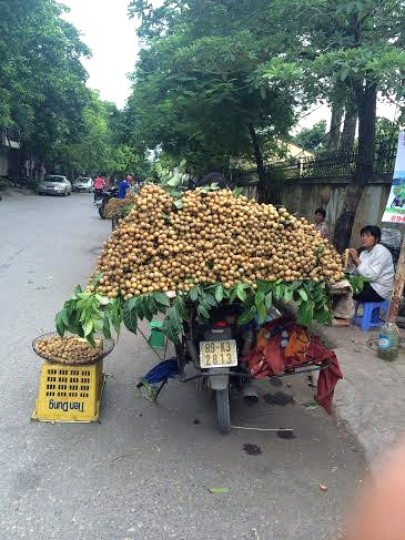 Thực tế, ngay đầu phố Hàng Đậu (Ba Đình), một người bán rong đang xếp những chùm nhãn lên gánh hàng của mình từ thùng nhãn vừa lấy buôn ở chợ Long Biên. Khi PV hỏi mua, người này lập tức quảng cáo: “Nhãn lồng Hưng Yên đấy, tươi ngon lắm, 45.000 đồng/kg thôi”.