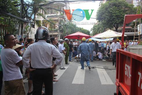 Ngay lúc đó, nhóm nhân viên điện lực Tân Bình đang làm cùng gần đó hốt hoảng chạy đến ngắt điện rồi bắc thang lên đưa nạn nhân xuống đất, căng dù che nắng cho nạn nhân. Nhân viên y tế nhanh chóng có mặt sơ cứu sau đó chuyển nạn nhân về bệnh viện trong tình trạng rất nguy kịch.