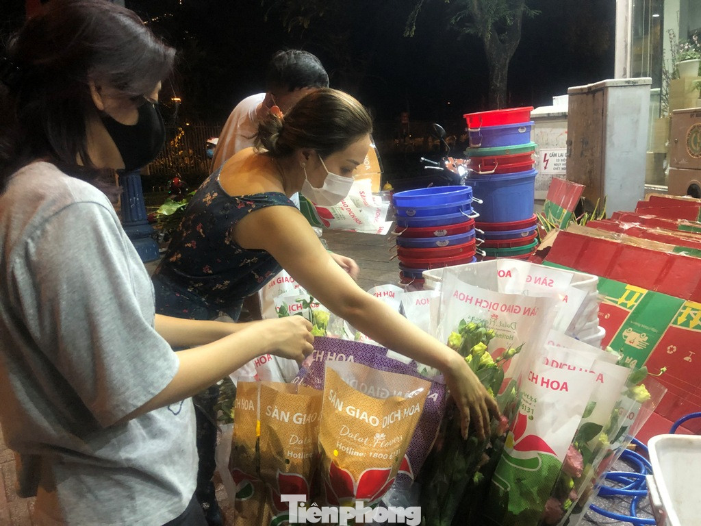 Nhân viên đội mũ chống giọt bắn bán hoa đại hạ giá ở TP.HCM ảnh 6   Nhân viên đội mũ chống giọt bắn bán hoa đại hạ giá ở TP.HCM ảnh 7