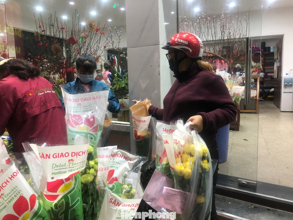 Một người khách mua cả chục bó hoa để trang trí nhà cửa 3 ngày xuân.