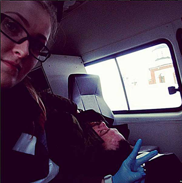 Theo Daily Mail ngày 9/3, Tatiana Kulikova, 25 tuổi, đã chụp ảnh "tự sướng" ngay khi làm nhiệm vụ trên xe cứu thương chở bệnh nhân tại thành phố Kirov và đăng trên mạng xã hội.