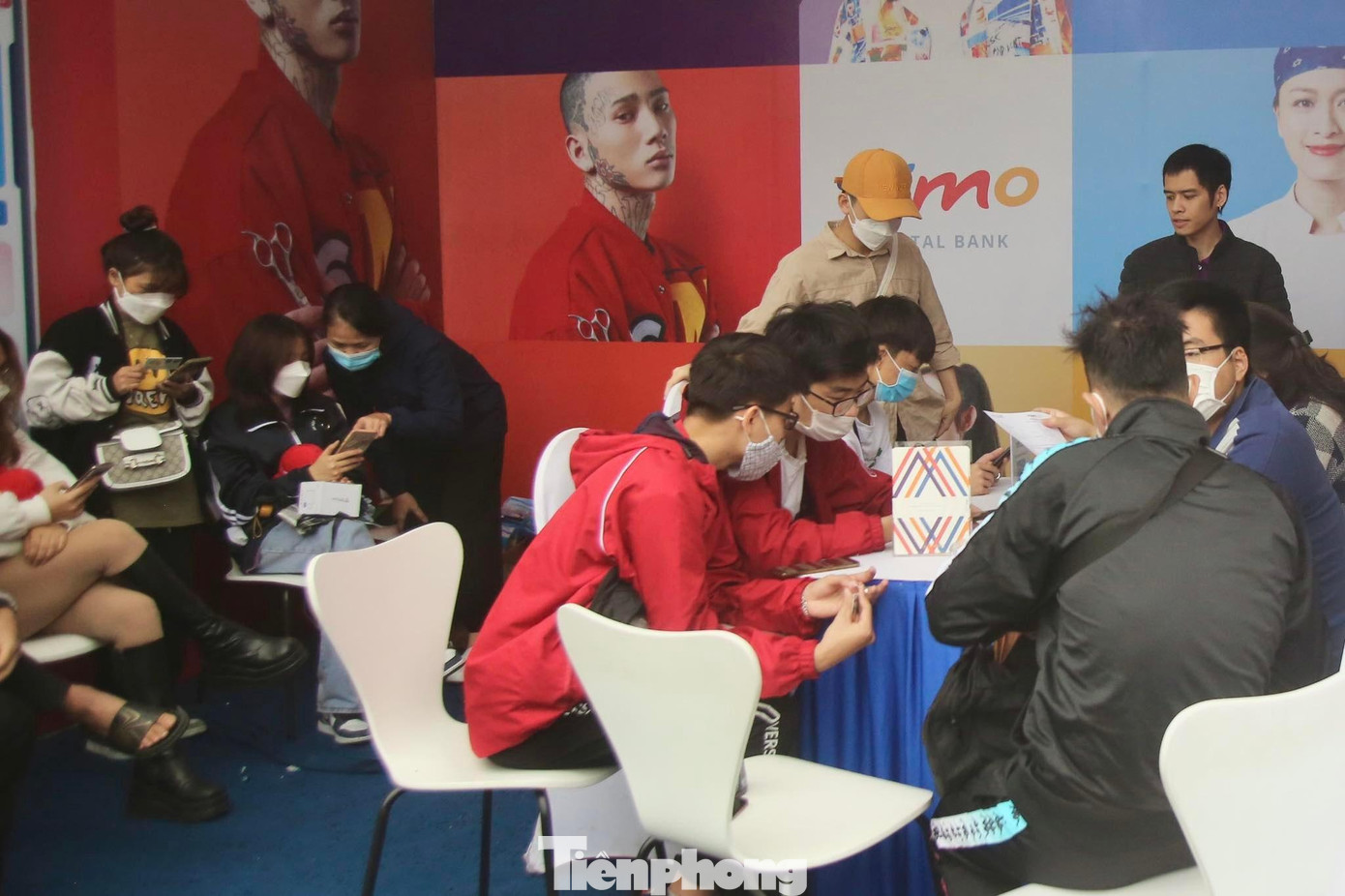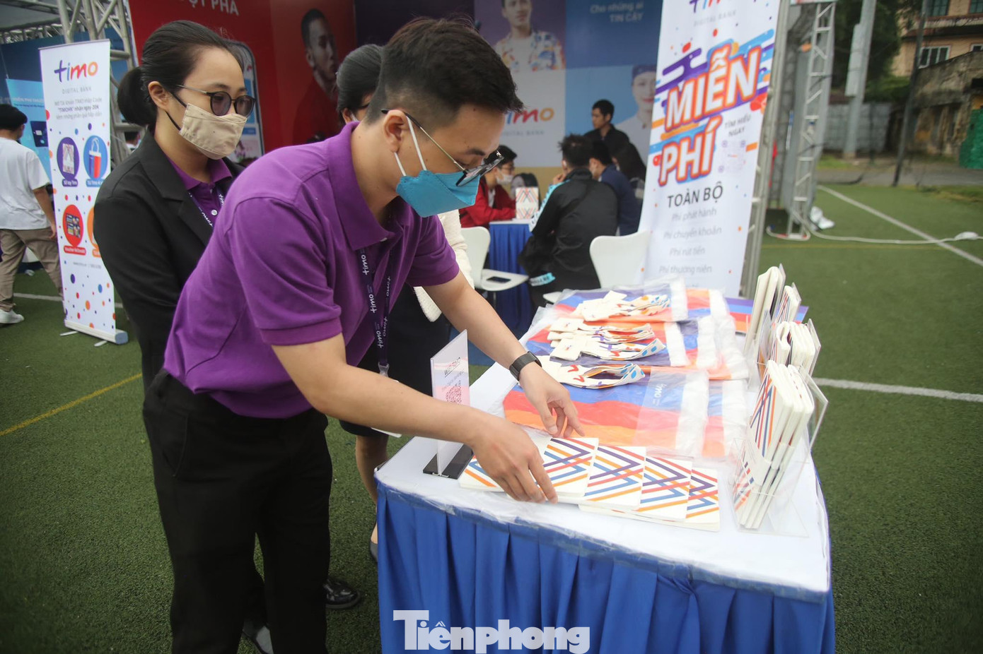 | Gian hàng của Timo Bank nhận được sự quan tâm lớn từ các bạn sinh viên. Nhân viên ngân hàng giới thiệu cụ thể các sản phẩm cho khách hàng. |
