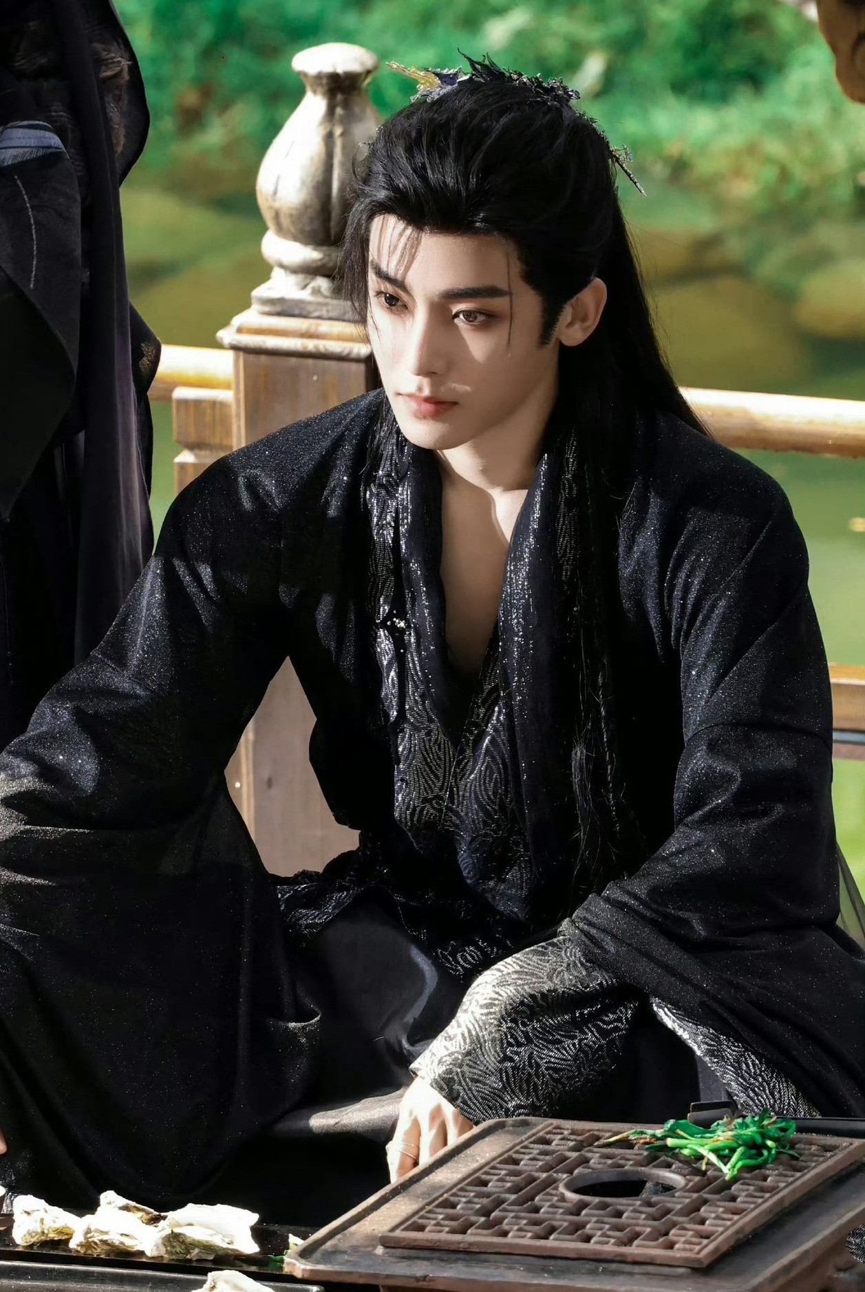 Hầu Minh Hạo cũng "đẹp ná thở" trong mọi góc ảnh. Trang phục nhiều lớp làm tăng sự quyền thế, xa hoa, cổ áo xẻ sâu để phần ngực hờ hững, rắn chắc đúng tinh thần của Kỷ Bá Tể đào hoa. Mỗi lần nhập đoàn phim là một lần Hầu Minh Hạo khiến fan "sốc visual". Kỷ đại nhân của Nhập Thanh Vân lại là một cú sốc về độ quyến rũ, lả lơi của nhân vật.