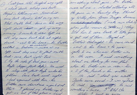 “Anh ta chỉ trở về nhà khi đêm xuống. Cạnh giường luôn đặt một khẩu súng ngắn, kiếm, dao nhọn, dao phay, dao bấm… Dao bấm luôn đặt dưới gối… Về sau, anh ta còn để thêm một khẩu súng trường cạnh giường. Trước khi đi ngủ, lúc nào anh ta cũng kiểm tra kỹ càng mọi cửa sổ, cửa ra vào đã được khóa cẩn thận chưa…”