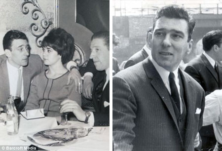 Ảnh trái: Reggie Kray (trái) từng một thời là “tội phạm nguy hiểm nhất nước Anh”, xuất hiện bên vợ - Frances Kray (phải). Ảnh phải: một bức ảnh chụp cận mặt Reggie Kray.