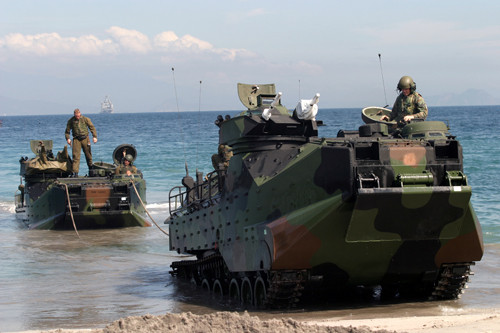 Được đưa vào hoạt động từ thập niên 1970, xe tấn công đổ bộ AAV7 hiện vẫn là loại phương tiện bọc thép đổ bộ hàng đầu của thủy quân lục chiến Mỹ. Loại xe này có trọng lượng hơn 29 tấn, có thể chở được 24 người, gồm kíp điều khiển 3 người và 21 binh sĩ. AAV7 có thể đạt tốc độ 13,2 km/h khi di chuyển dưới nước và 72 km/h ở trên cạn. Lớp giáp dày 45 mm của nó có thể chống được đạn súng máy, mảnh pháo, trong khi khẩu súng máy 12,7 ly trên tháp pháo có thể tiêu diệt được cả ổ hỏa lực đề kháng của địch.