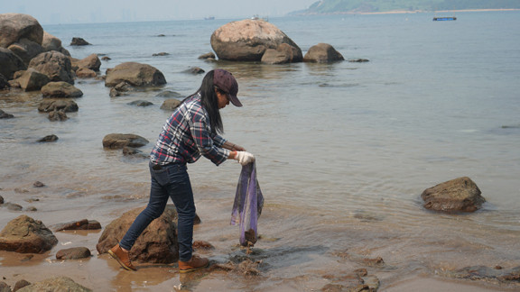 Buổi nhặt rác tại bãi biển Sơn Trà (quận Sơn Trà, TP Đà Nẵng) vừa diễn ra với sự hướng dẫn của các thành viên Nhóm cứu hộ sinh vật hoang dã SASA.