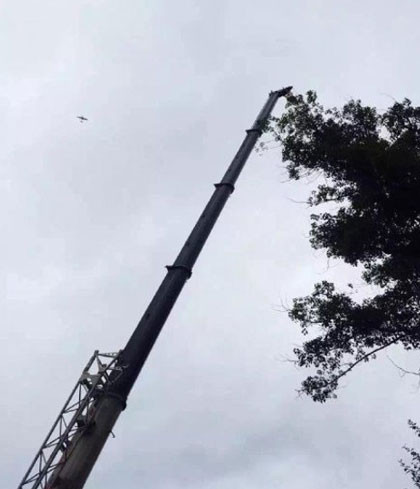 Chơi vơi giữa độ cao chót vót, chàng trai không thể tự mình trèo xuống do vướng víu dây quanh người.