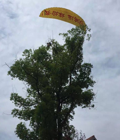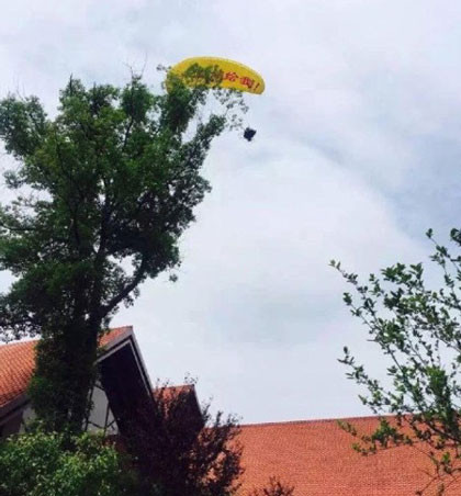 Để thuyết phục bạn gái cầu hôn với mình, một chàng trai ở Hồ Bắc, Trung Quốc đã lên kế hoạch tỏ tình rất kỳ công. Theo Shanghaiist, hôm 21/5 vừa qua, anh chàng quyết định nhảy dù, trên thân dù có ghi dòng chữ: "Gou Hong Yun - Lấy anh nhé!".