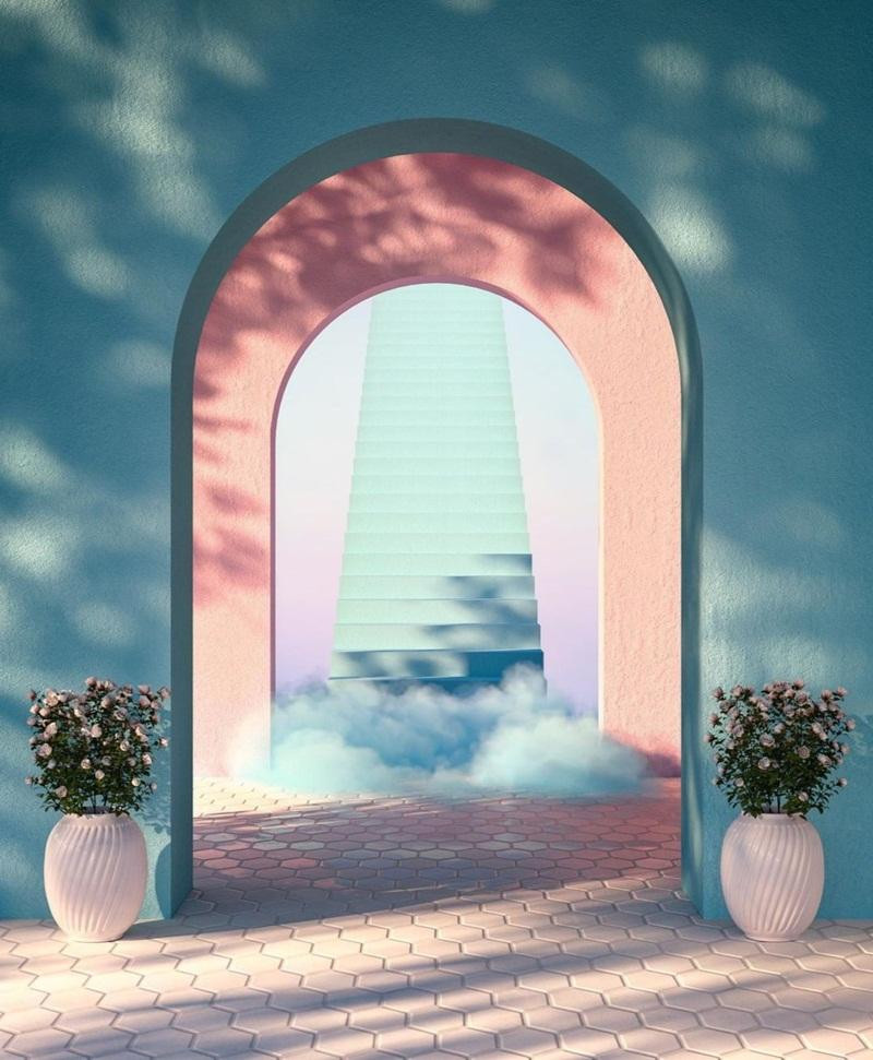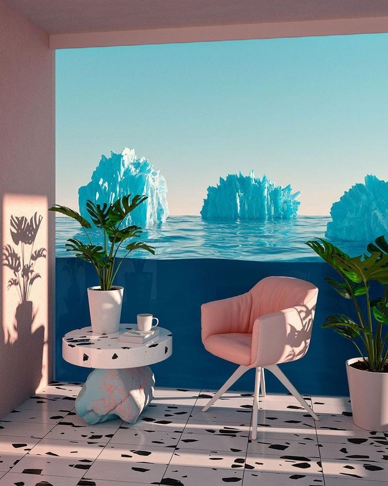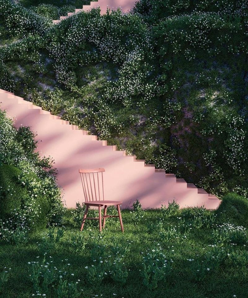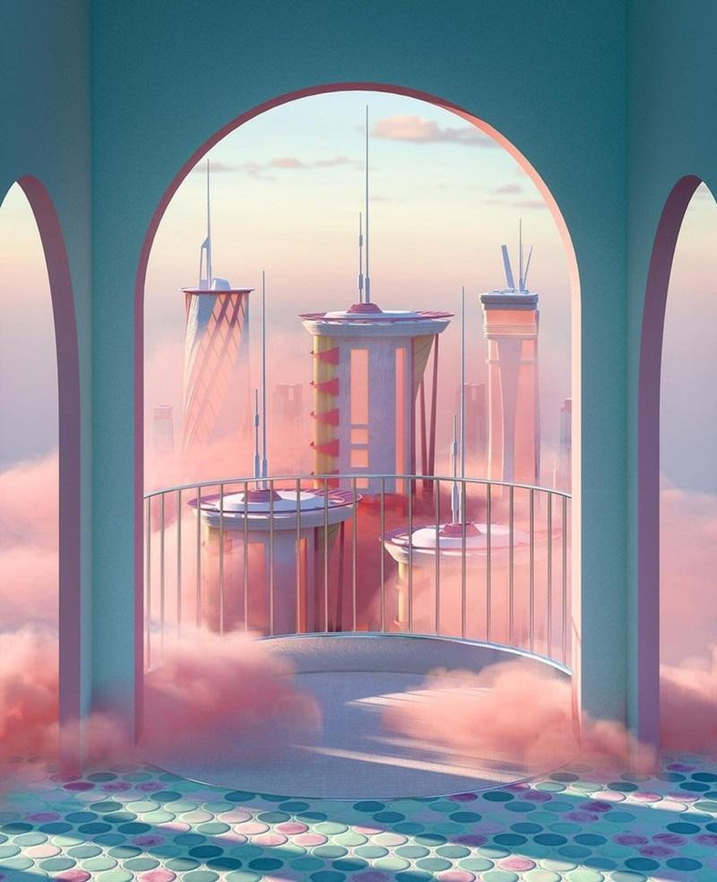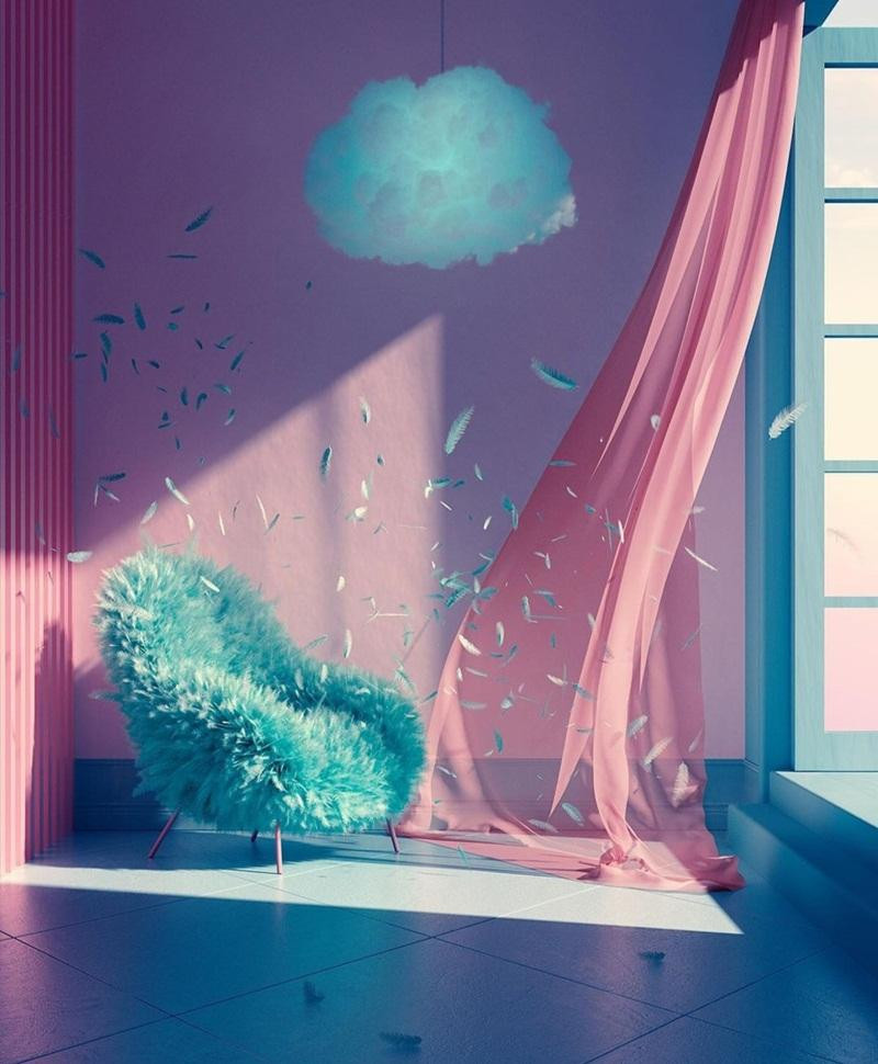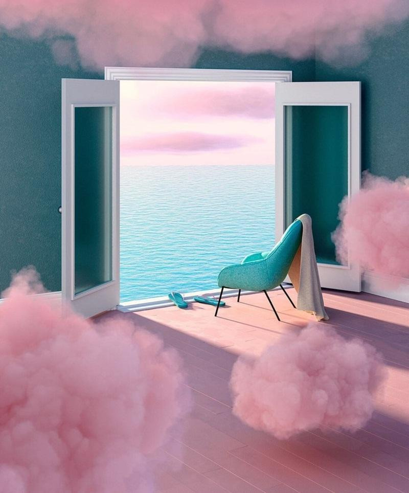 Sự bay bổng của Karl Larsson còn được thể hiện qua các tấm ảnh về những căn phòng lơ lửng trên không, ban công chìm trong mây hồng, mặt trăng hồng phớt,...