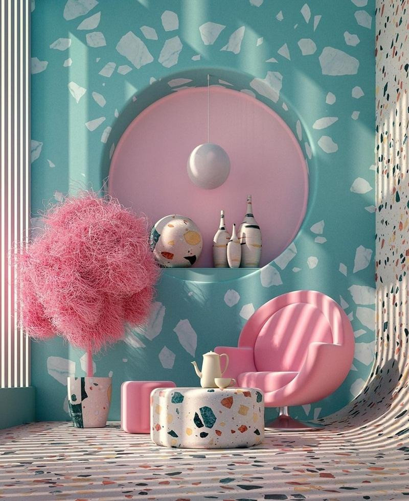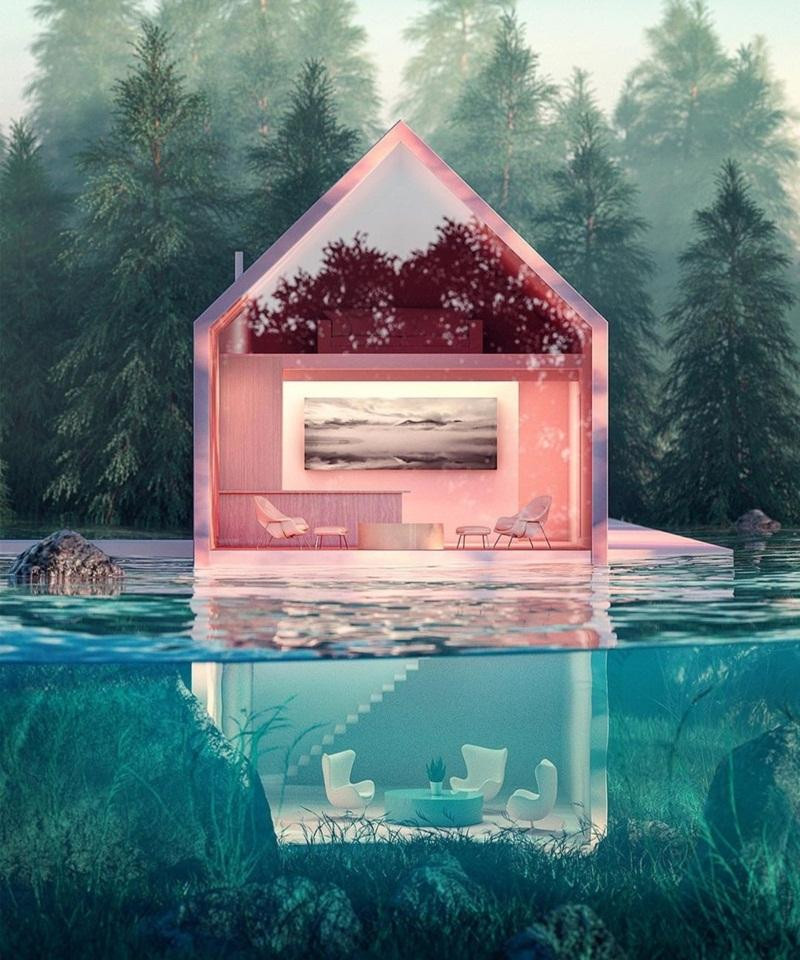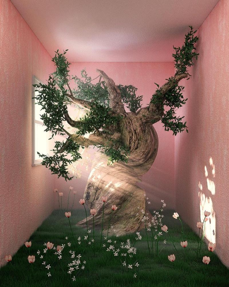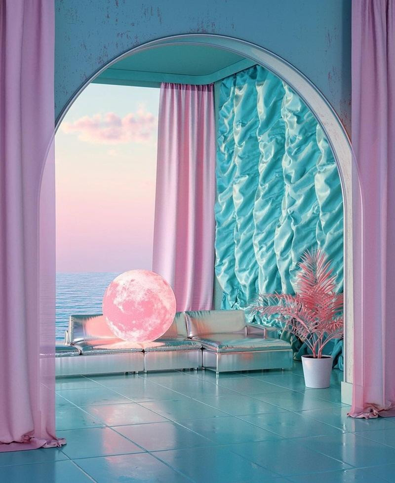Ở đó, bạn dễ dàng bắt gặp những góc bày trí nội thất với tông màu hồng phấn bắt mắt, nhưng cũng thấy cả những điều phi thực tế như cây cối màu hồng, những cây nấm màu hồng, những đám mây đang cuộn lại trong bồn tắm...