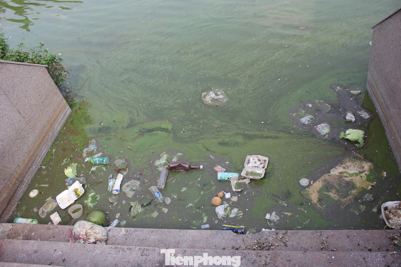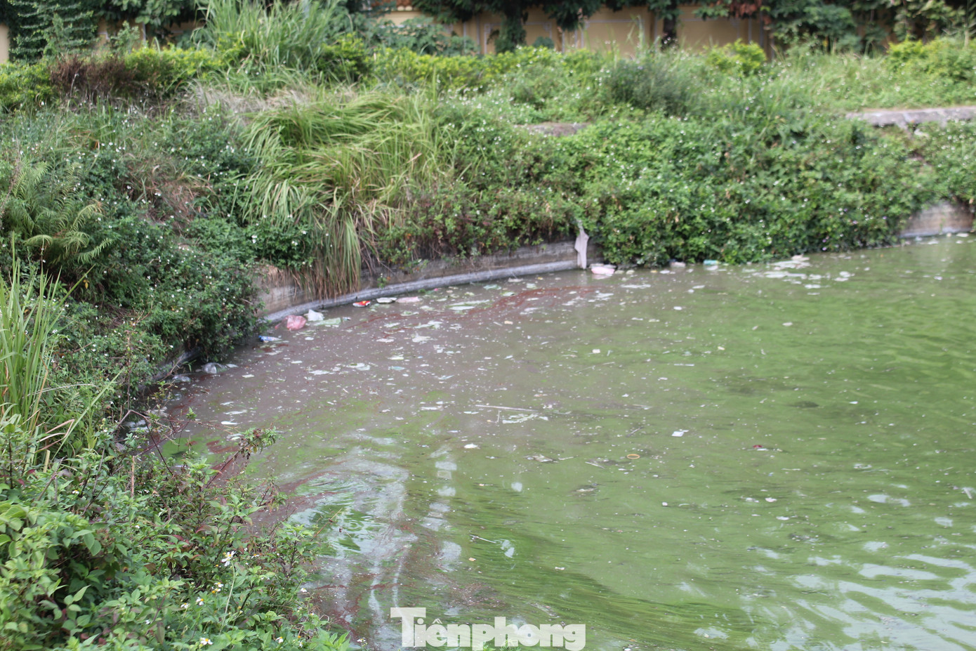 | Hồ nước cỏ dại mọc um tùm, trở thành nơi câu cá, phóng sinh và xả rác. |