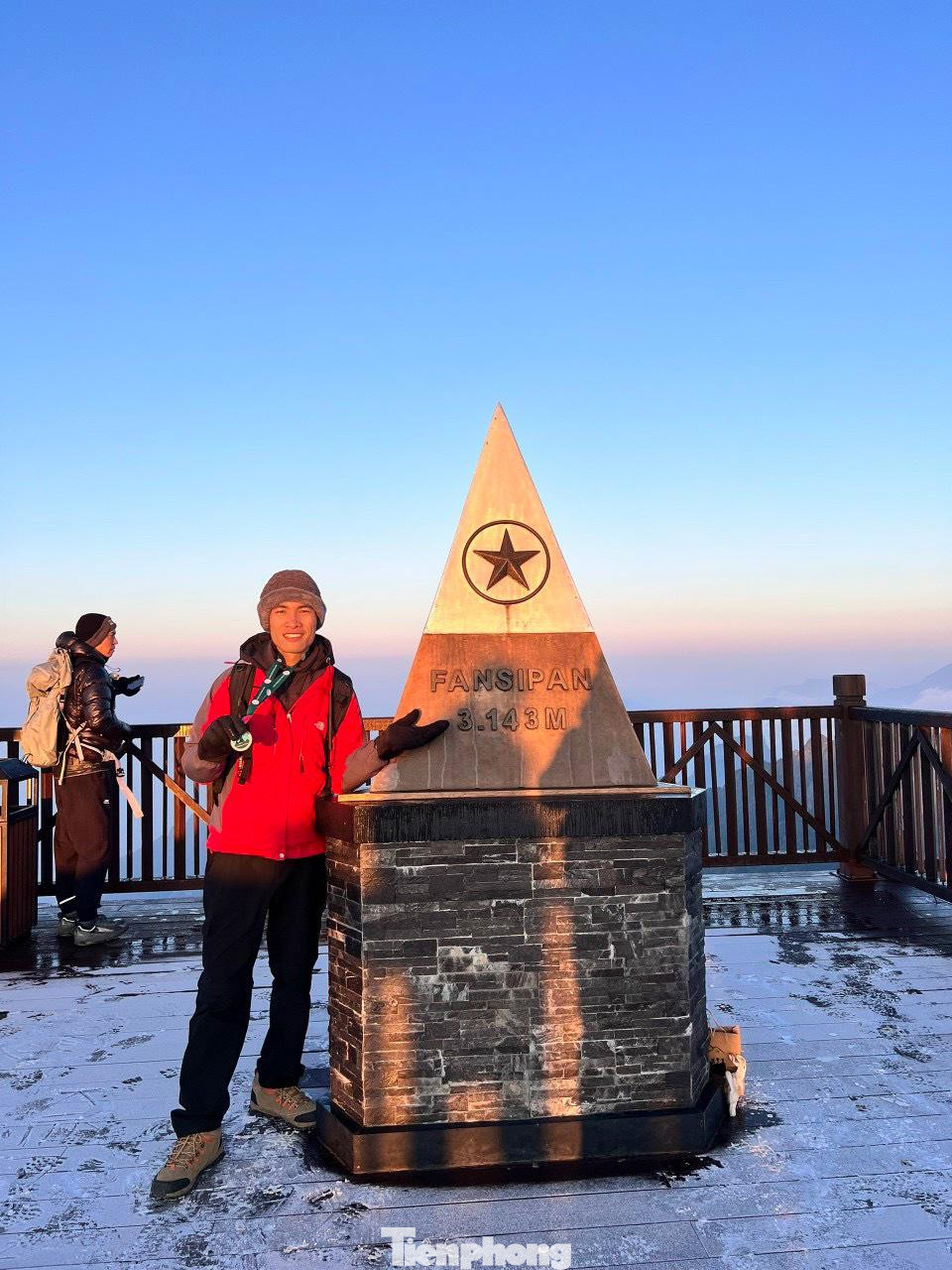 | Những du khách may mắn được check in khung cảnh "băng giá" xuất hiện trên đỉnh Fansipan. | |
