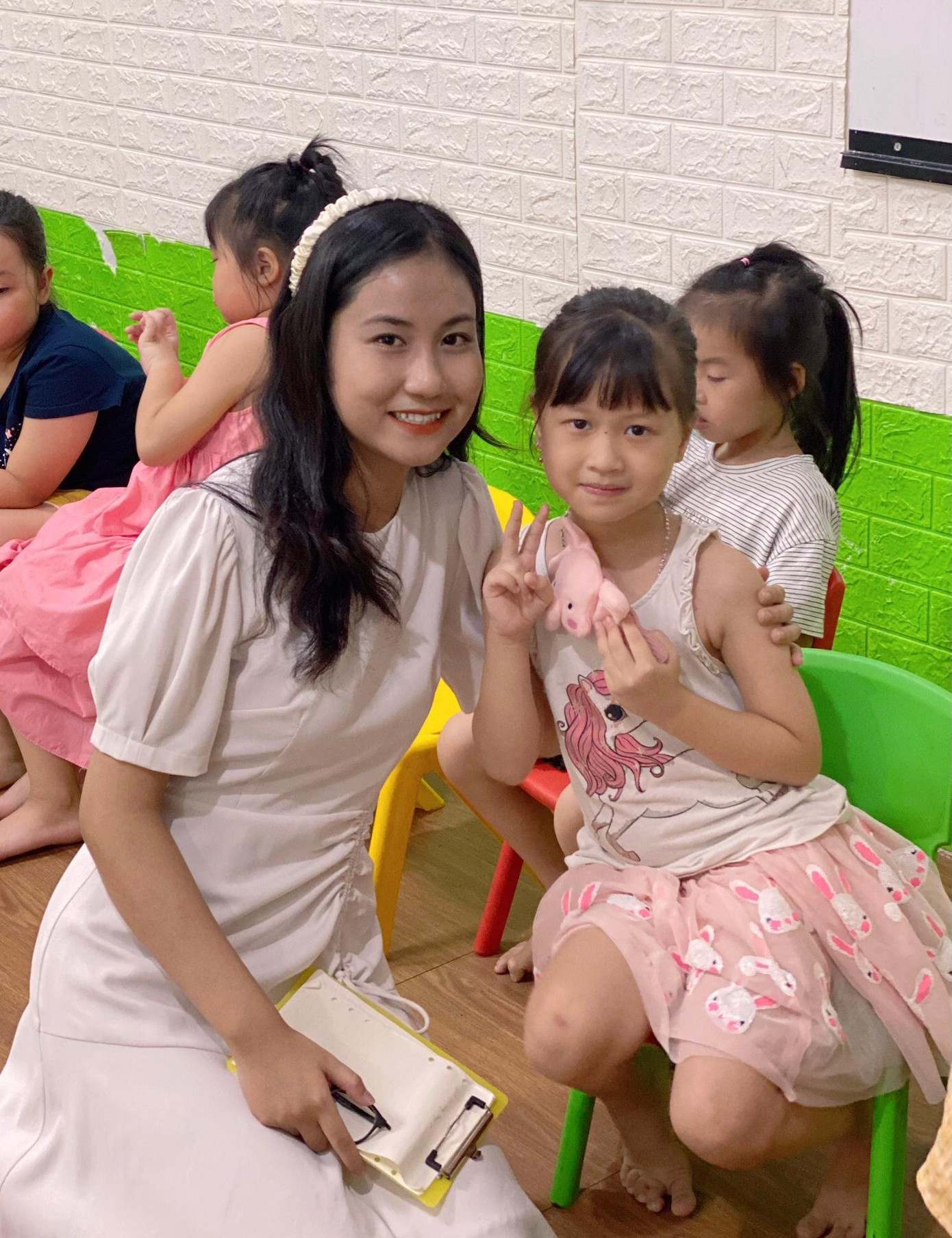 Và minh chứng rõ ràng cho sự nỗ lực của mình là các bé học sinh đã tự tin tiến bộ hơn rất nhiều sau khóa học. Hơn nữa, phụ huynh học sinh cũng rất tin tưởng và gửi những lời cảm ơn đến cô giáo, là mình.