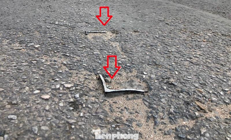 | Đầu đinh nhọn dài khoảng 2cm nhô lên khỏi mặt đường Xuân Thủy đoạn qua ga trước Đại học Quốc gia. |