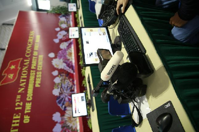Sáng nay (20/1), Trung tâm báo chí dành cho các phóng viên tác nghiệp, đưa tin về Đại hội Đảng đặt trên tầng 3 trung tâm Hội nghị Quốc gia Mỹ Đình (Hà Nội) đông kín nhà báo và phóng viên tác nghiệp.