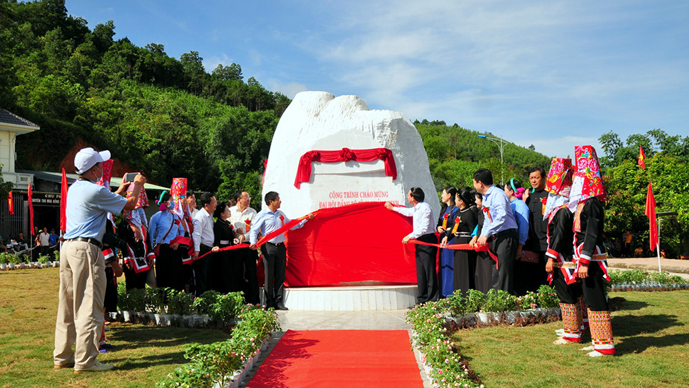 Lễ gắn biển chào mừng Đại hội Đảng bộ tỉnh cho Hệ thống các công trình giao thông kết nối tới 104 thôn, bản huyện Bình Liêu (tháng 9/2020).