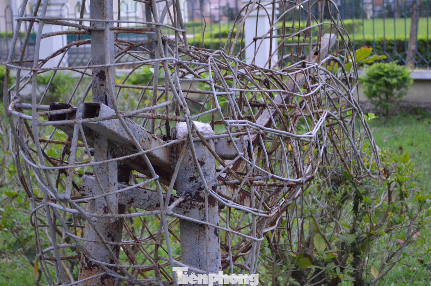 | Nhiều mô hình con vật như heo, dê, ngựa... được tạo ra bằng sắt thép hiện để trơ khung trong trung tâm khuôn viên. |
