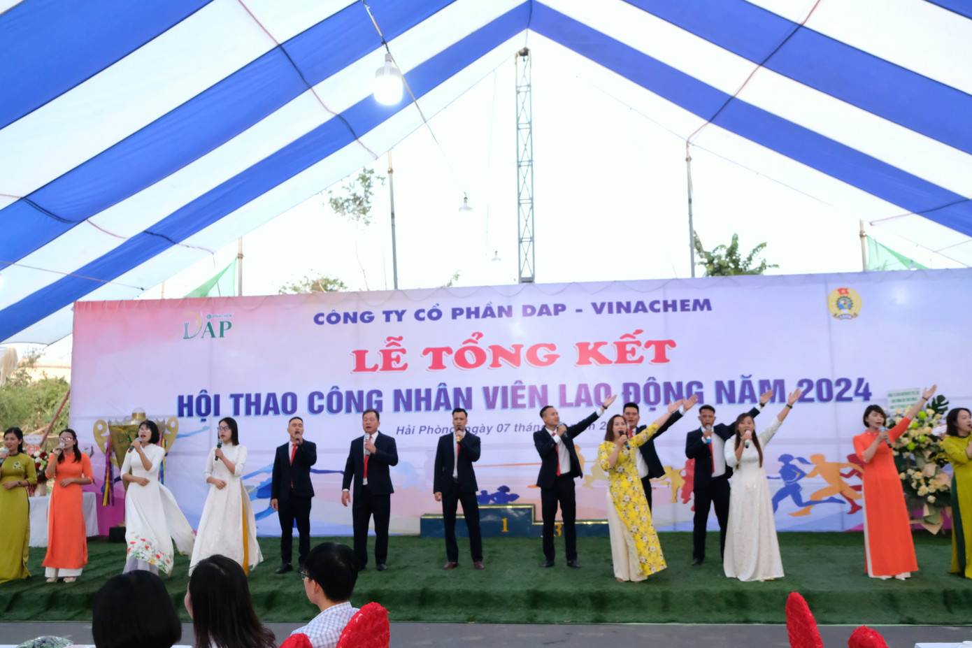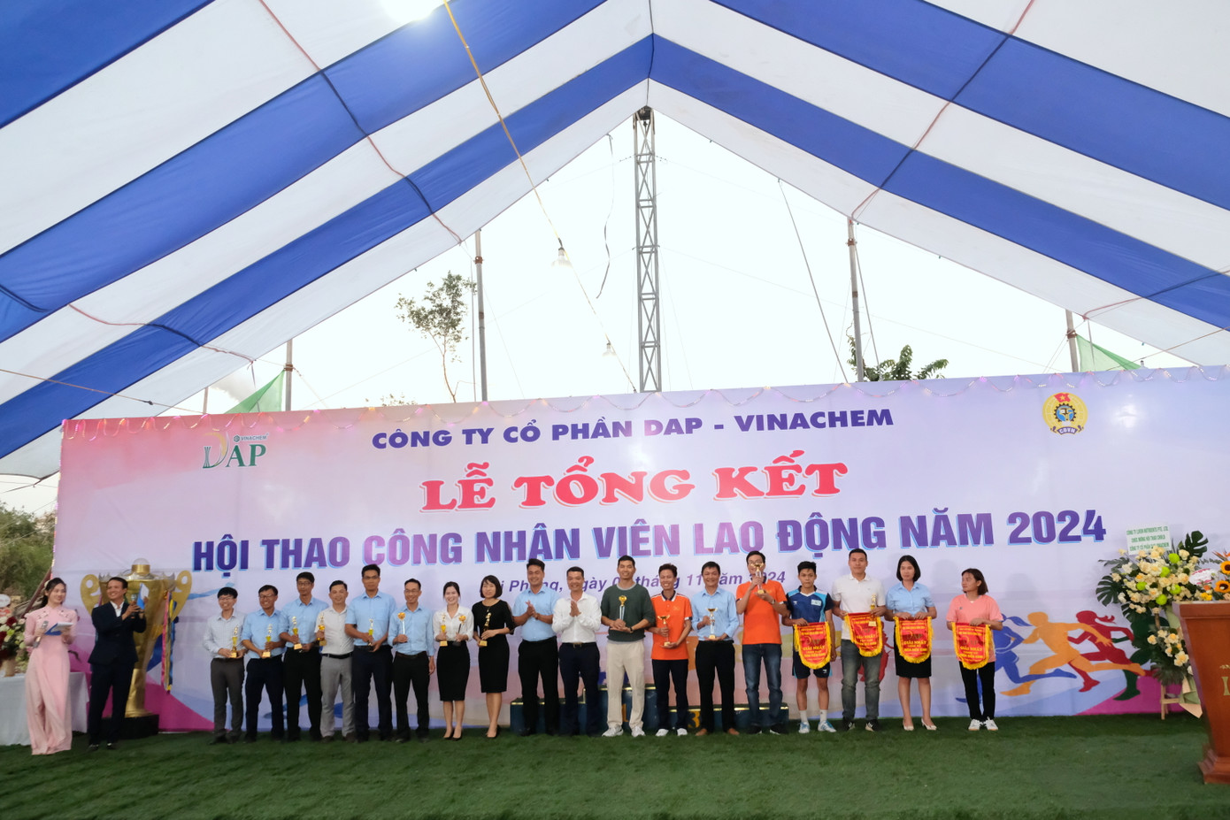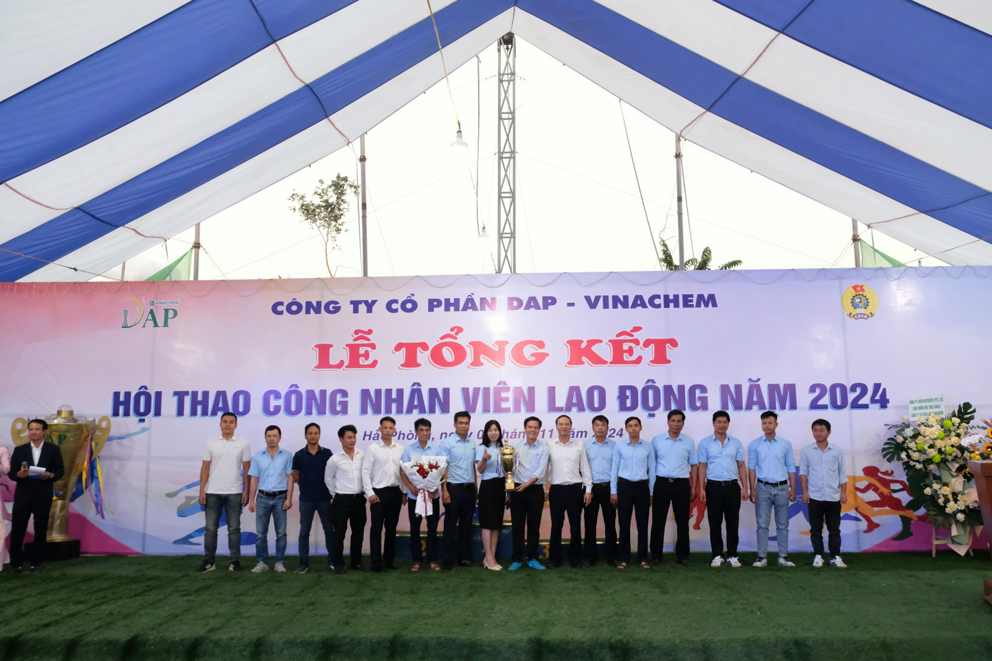 Lễ Tổng kết trao giải Hội thao năm 2024, có sự tham dự của bà Hồ Thị Mai Hương - Phó chủ tịch Công đoàn Công nghiệp Hóa chất Việt Nam; ông Nguyễn Tuấn Dũng - Chủ tịch HĐQT; ông Vũ Văn Bằng - Bí thư Đảng ủy, Tổng Giám đốc Công ty.