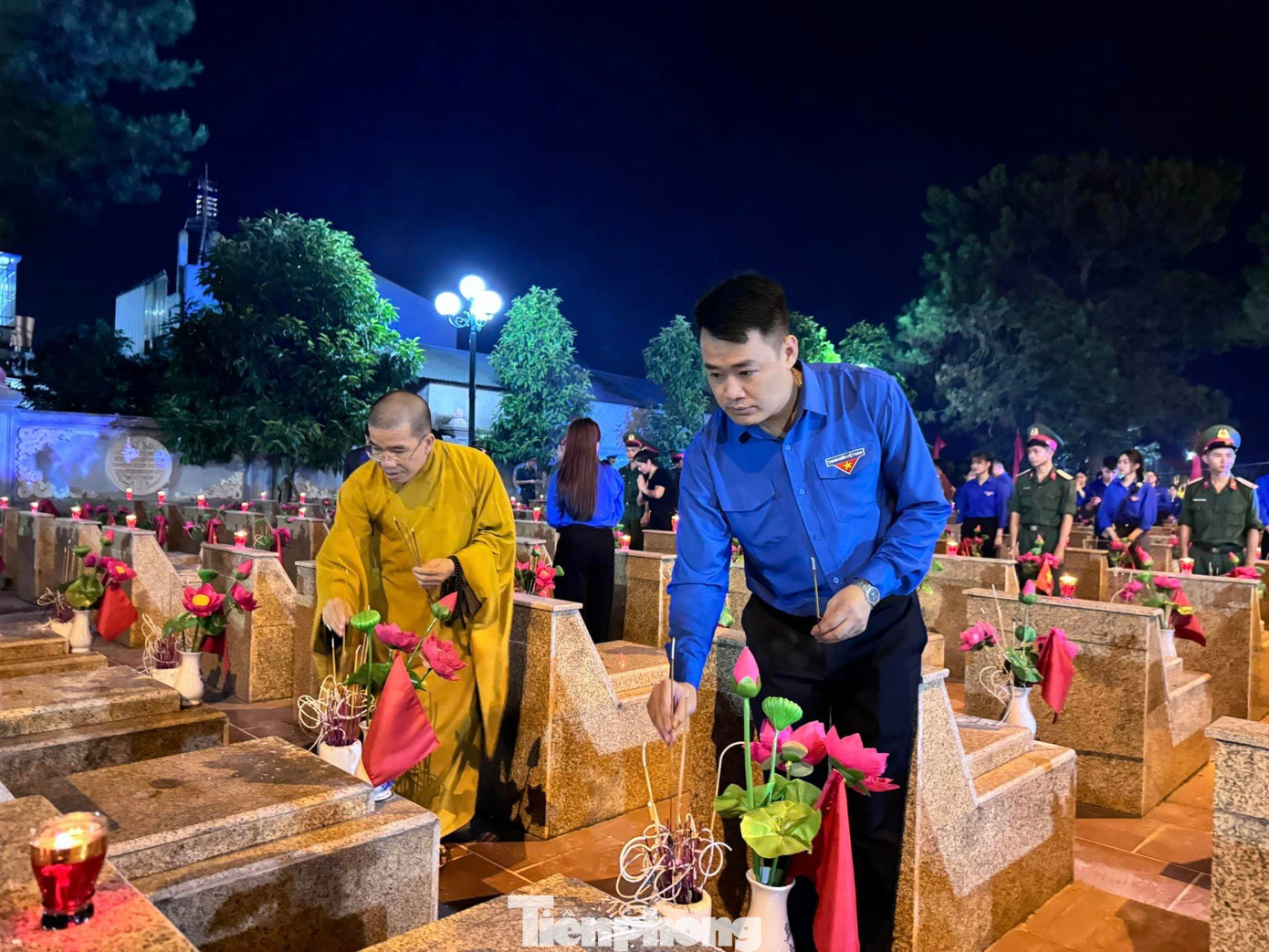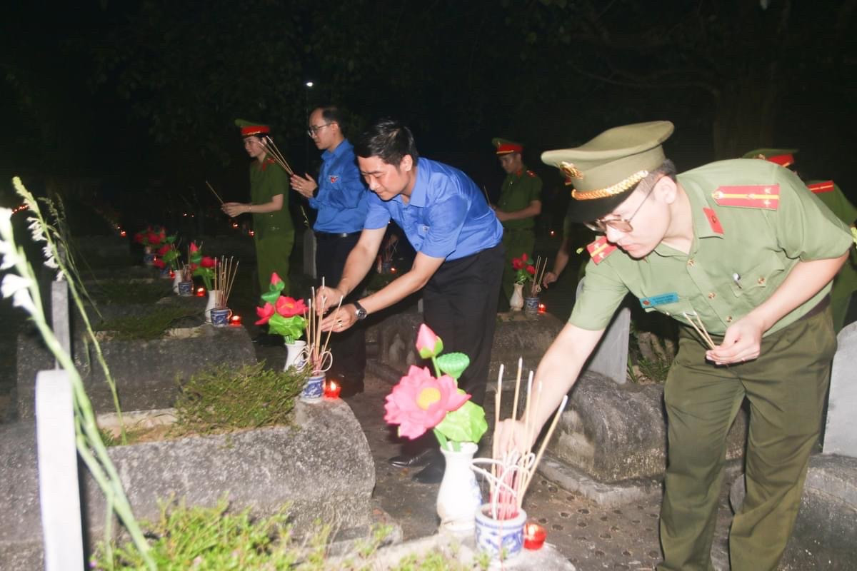 Trong đêm 26/7, gần 2.000 cán bộ, đoàn viên thanh niên đại diện cho hơn 1 triệu thanh niên toàn tỉnh Thanh Hóa, kính cẩn đặt trên từng phần mộ của các anh, các chị những bông hoa tươi thắm, thắp lên những ngọn nến lung linh để thể hiện quyết tâm không ngừng thi đua học tập, rèn luyện, lao động sáng tạo, xung kích tình nguyện xây dựng quê hương ngày càng giàu đẹp...