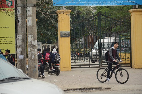 Trong hai ngày 18 và 19/2, Phóng viên Tiền Phong đã có mặt tại một số trường học vào giờ tan tầm. Tại cổng trường THPT Nguyễn Bỉnh Khiêm, THCS Cầu Giấy, THCS Nguyễn Tất Thành… và trên một số tuyến đường gần các trường học như đường Trần Đăng Ninh, đường Nguyễn Khánh Toàn, Trần Quốc Hoàn… tình trạng học sinh không đội mũ bảo hiểm khi đi xe đạp điện diễn ra khá phổ biến.