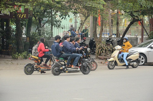 Gần 1 năm sau khi luật có hiệu lực nhưng đến nay tình trạng học sinh đầu trần điều khiển xe đạp điện vẫn ngang nhiên xuất hiện nhiều trên các tuyến đường của Thủ đô.