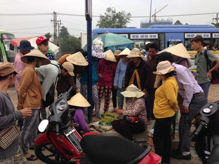 Sáng 8/1, rất đông người có mặt tại trước khu du lịch Suối Tiên trên xa lộ Hà Nội (phường Tân Phú, quận 9, TPHCM) được một số phụ nữ bán hàng rong tại khu vực này cho xem những chất lạ có trong những chiếc dép nghi có xuất xứ từ Trung Quốc.