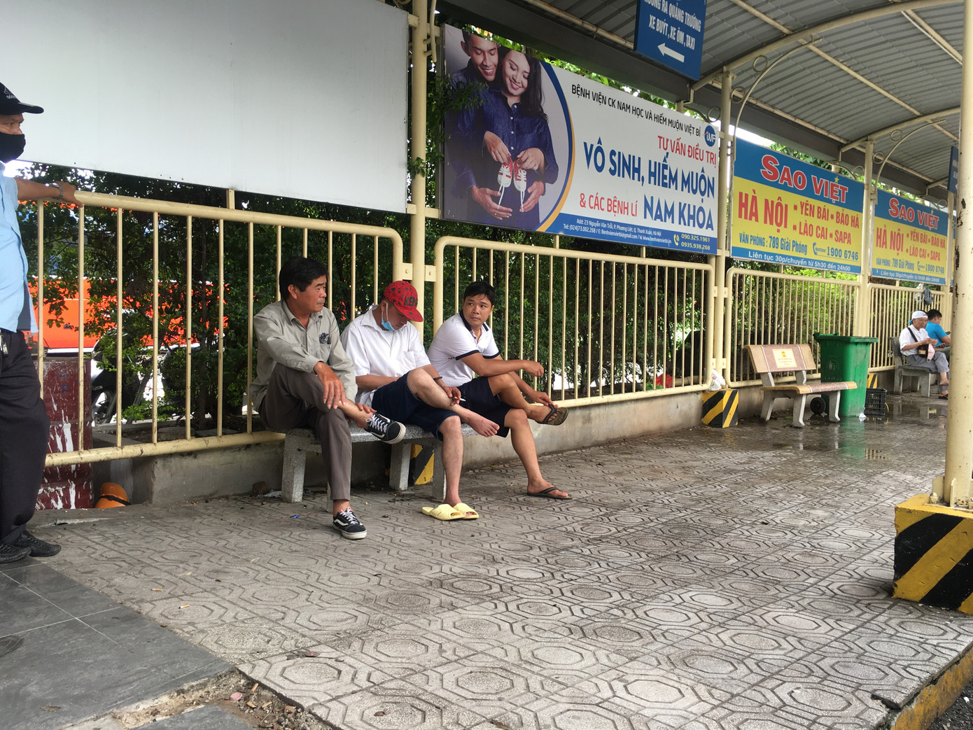 Anh N.V.T phụ xe tại bến xe Mỹ Đình cho biết vì đeo khẩu trang nhiều thấy ngột ngạt khó chịu, chỉ khi hành khách đã lên hết, xe khởi hành thì anh mới đeo.