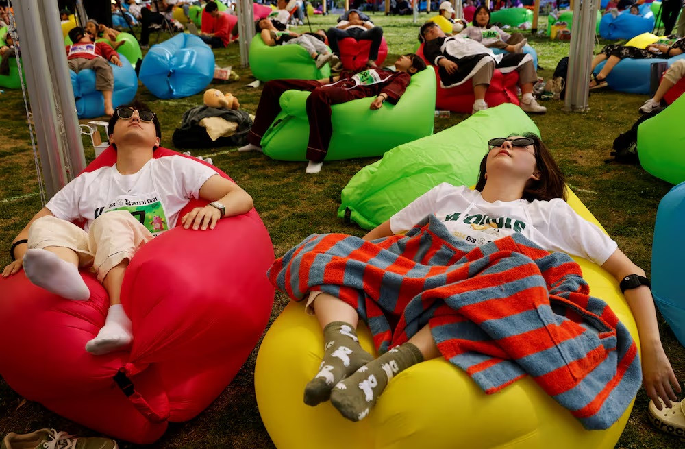 Hàng trăm người hôm thứ Bảy vừa qua (18/5) đã tập trung tại thủ đô Seoul để tham dự một sự kiện khá lạ lùng nhưng đầy ý nghĩa: Cuộc thi ngủ. Trước đó, đã có nhiều cuộc thi hấp dẫn được tổ chức như thi ngồi nhìn xa xăm đờ đẫn mà không cần làm gì...