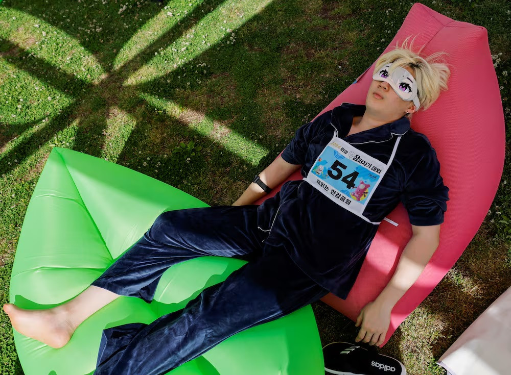 Son Ji-hong, 24 tuổi, tham gia cuộc thi với chiếc gối kê cổ và kính râm, cho biết: “Hàng ngày chúng tôi phải đối mặt với sự cạnh tranh và tầm quan trọng của giấc ngủ dường như bị đánh giá thấp”.