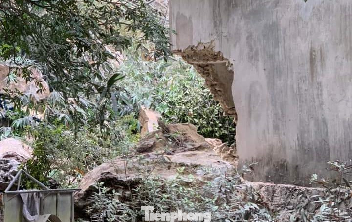 | Tại thôn Om Làng, núi đá đã sạt lở và khiến 1 gia đình phải di dời khẩn cấp đến an toàn. |