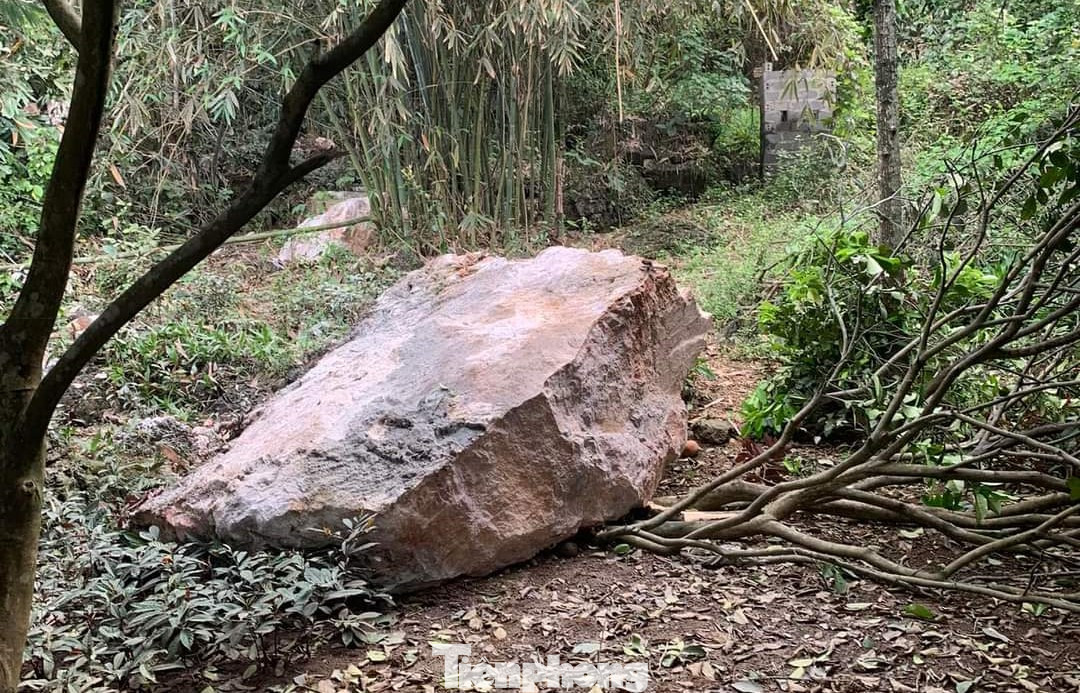 | Hiện trường để lại là hàng chục tảng đá lớn nằm la liệt, nhiều tảng đá còn mắc lưng chừng núi, có nguy cơ tiếp tục sạt lở. |