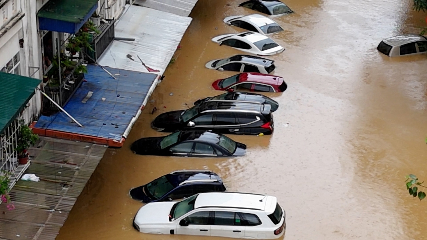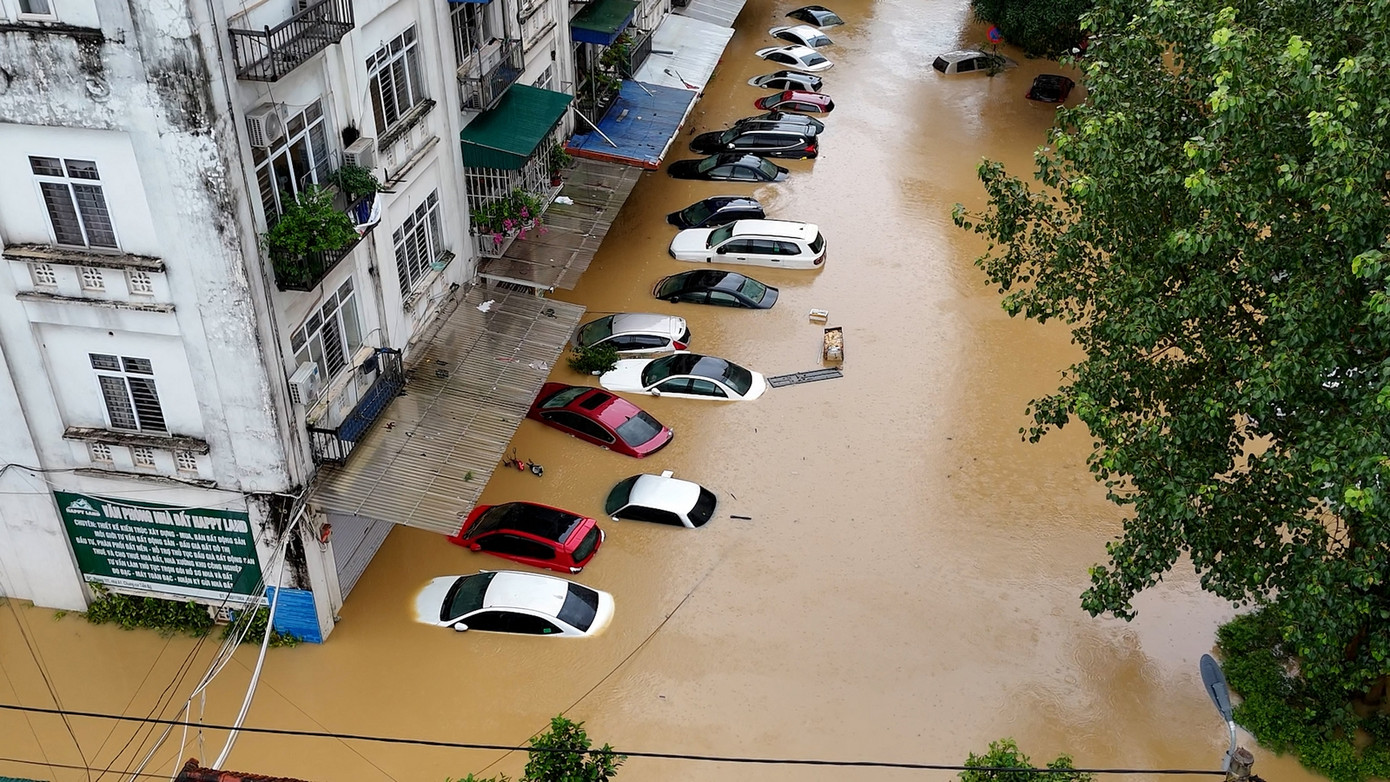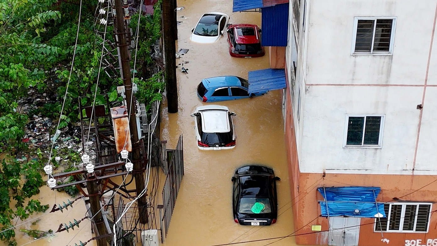 Video: Hàng loạt xe ô tô "trồi lên" sau khi nước lũ rút ở thành phố Thái Nguyên.