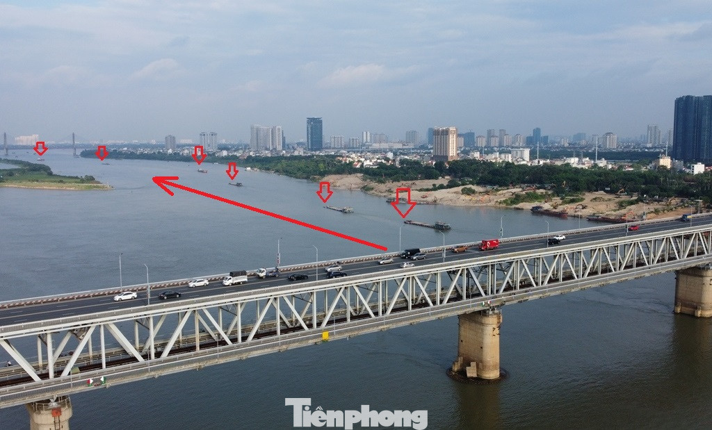 | Thậm chí, ngoài chở cát chìm mớm nước tải trọng an toàn, ngày 14/5 hai tàu VP-0850 và PT-1272 khi lưu thông trên sông đua tốc độ, cướp làn để qua gầm cầu Thăng Long trước. |