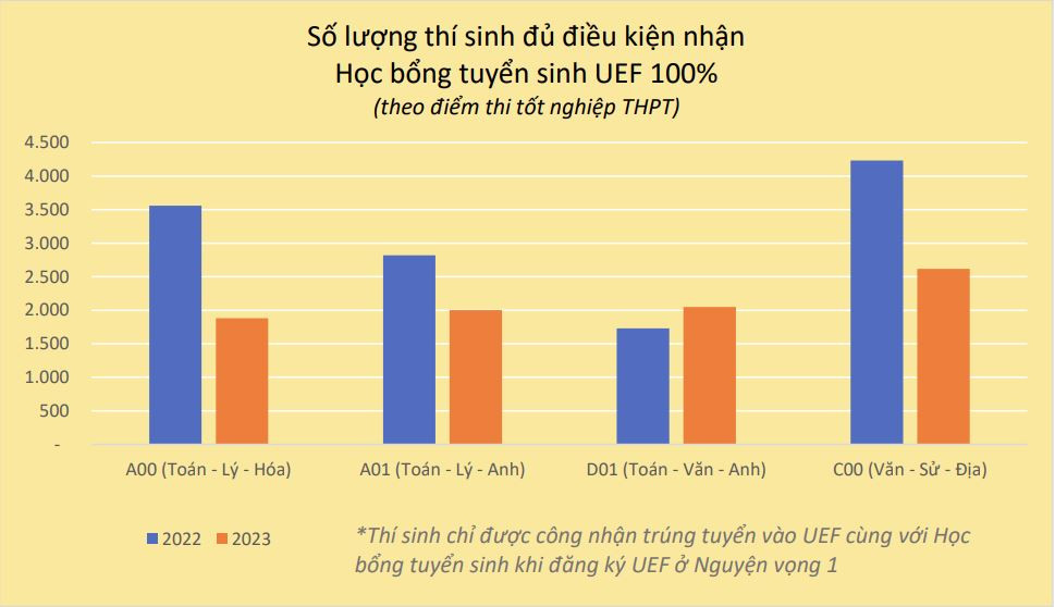 Từ đây, Trường Đại học Kinh tế - Tài chính TP.HCM (UEF) cũng xác định được lượng thí sinh có khả năng sở hữu các suất học bổng từ 25%, 50% và 100% theo phương thức xét kết quả thi tốt nghiệp THPT.