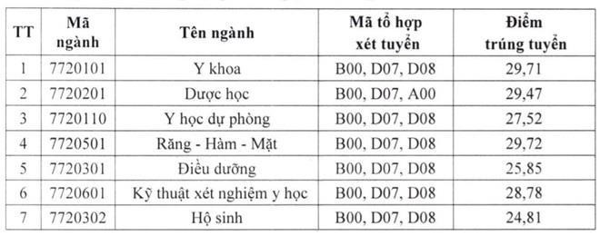 Với hình thức xét tuyển đại học theo hình thức học bạ, điểm chuẩn vào trường ĐH Y Dược - ĐH Thái Nguyên dao động 24,81 - 29,72. Trong đó, hai ngành điểm chuẩn cao nhất là ngành Y khoa (29,71 điểm) và Răng - Hàm - Mặt (29,72 điểm).