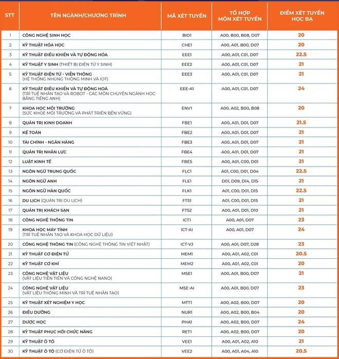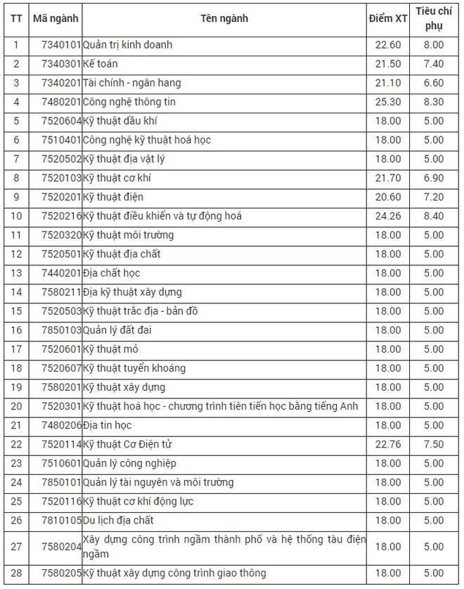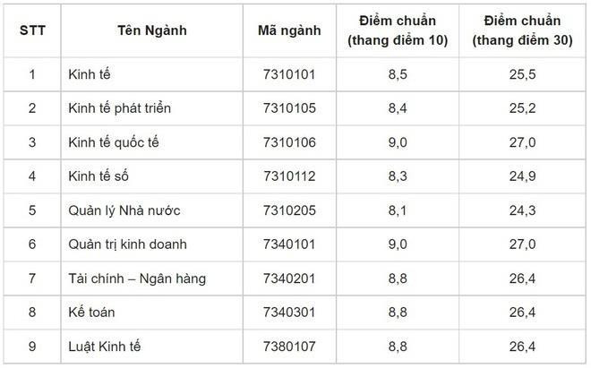 Điểm trúng tuyển ở bảng trên được tính theo thang 30, tất cả các môn trong tổ hợp xét tuyển đều tính hệ số 1.