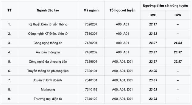 Điểm chuẩn vào Học viện Công nghệ Bưu chính Viễn thông năm 2020: