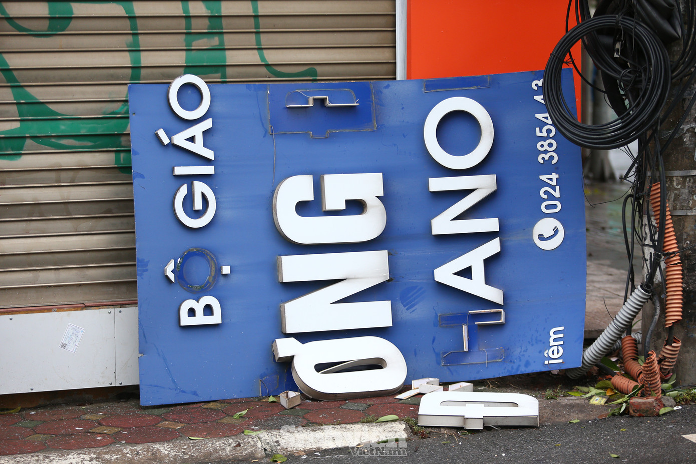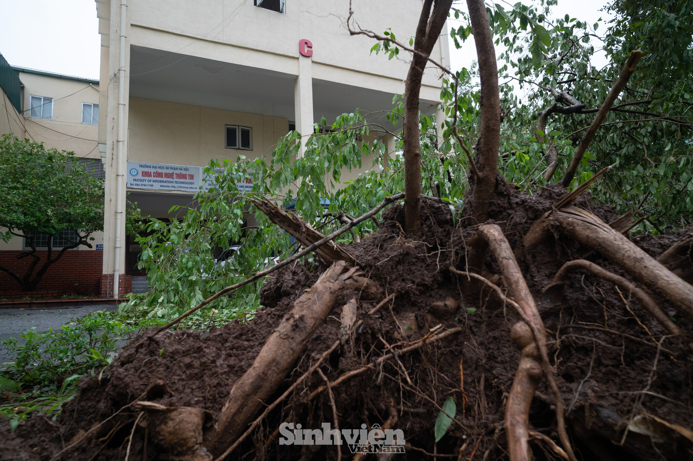 Khung cảnh tan hoang trong khuôn viên Trường Đại học Sư phạm Hà Nội.