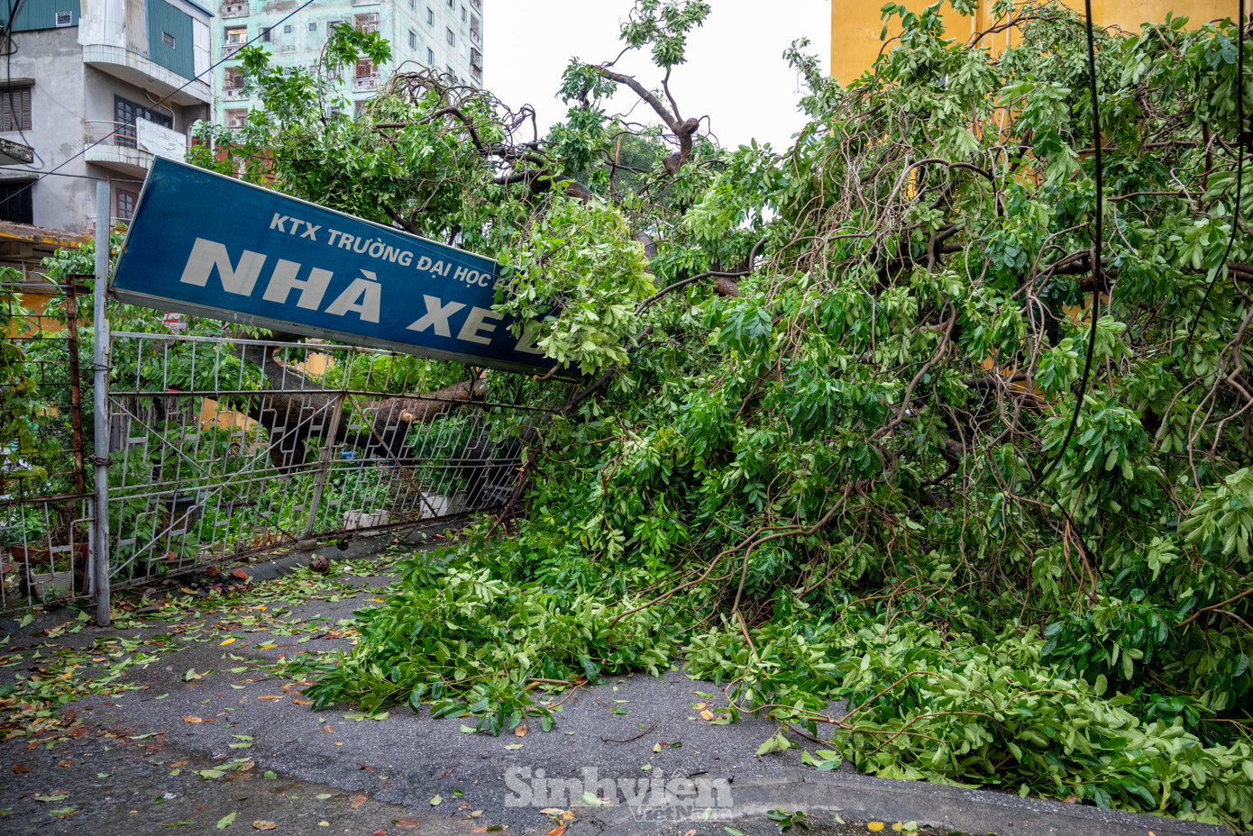 Khu Giáo dục QPAN và khuôn viên KTX Đại học Bách khoa, cây lớn bật gốc, đè đổ tường bao.