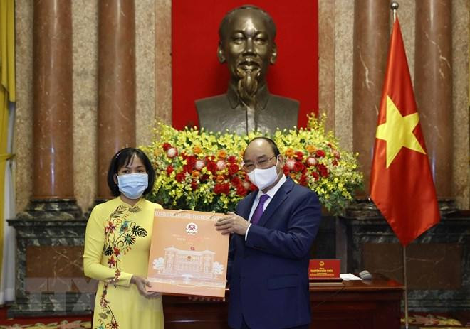 | Chủ tịch nước Nguyễn Xuân Phúc và các đại biểu. (Ảnh: Thống Nhất/TTXVN) |