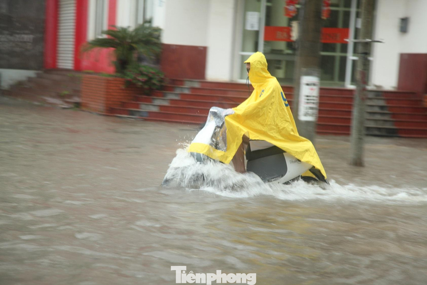 | Đường Hoàng Văn Thụ (tuyến phố chính ở thành phố Bắc Giang) cũng chìm trong biển nước. |