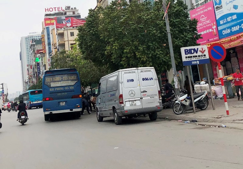 Nhà xe Hà Thì và Đạo Đường dừng đỗ, dàn hàng ngang bắt khách tại biển cấm dừng tại nút giao Nguyễn Xiển – Nguyễn Trãi.