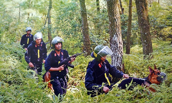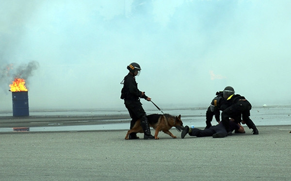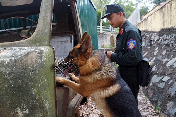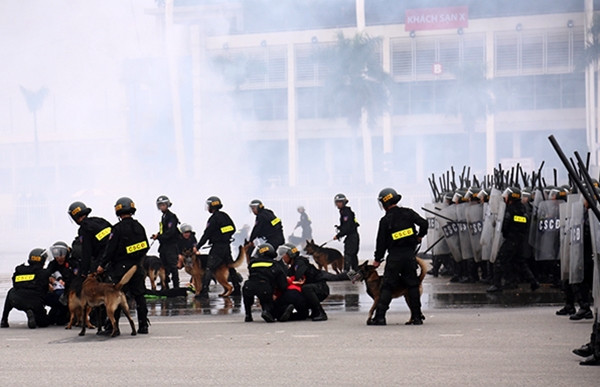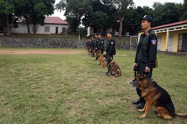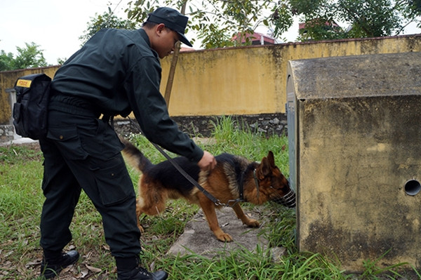 Lực lượng cảnh khuyển tham gia diễn tập bảo vệ Đại hội Đảng toàn quốc lần thứ XII.
