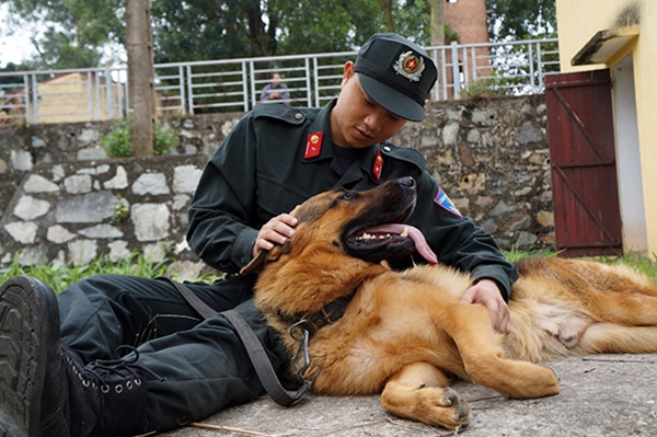 Phút thư giãn hiếm hoi của Thiếu úy và Rex sau giờ tập.