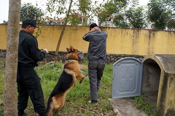 Tiếp đó, bài tập phát hiện đối tượng trốn chạy của cảnh khuyển tên Rex và HLV là Thiếu úy Nguyễn Vũ Cương (cán bộ Phòng 6 K204).